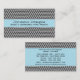 Trendy and stylish Modern Chevron Business Card featuring a zigzag chevron striped background in black and white and a simple light blue overlay. This chic and elegant design is easy to customise with the details of your business. Click "Customise It" to find more personalisation options.