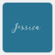 Blue Modern Elegant Plain Simple Professional Name Square Sticker