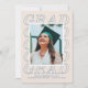 This trendy graduation card features a bold, minimalist typographic design using the word "Grad". A photo frame with a white border is placed over the lettering, allowing just enough the word to be visible and legible. There is space for a custom message beneath the typographic design. The back side of the card features a coordinating graduation cap pattern. The colours of this card are fully customisable, so you can keep the colours as is, or change them to reflect your school's colours. The design is perfect for a high school or college graduation!