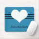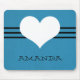 Sweet and charming Modern Heart Mousepad featuring a light blue background and a cute heart and striped border. This cute and girly mousepad will add style to any workspace. Customise with the text of your choosing. Click on "Customise" to find additional personalisation options.