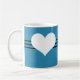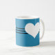 Sweet and charming Modern Heart Mug featuring a light blue background and a cute heart and striped border. This cute and girly mug is perfect for enjoying your favourite hot beverage! Customise with the text of your choosing. Click on "Customise" to find additional personalisation options.