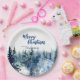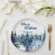 Blue Modern Merry xmas trees forest raindeer Paper Plate