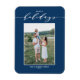 Happy Holidays! Send holiday wishes to family and friends with this customisable modern holiday magnet. It features an elegant script and simple typography. Personalise this photo holiday card by adding names and a photo. This blue holiday magnet is available on other cardstock and colours.