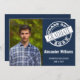 This modern and simple graduation party invitation with white typography inside a circle like a stamp, that reads “class of” and the graduation year, on a navy blue background is perfect for a high school or college graduation party.