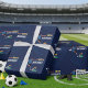 Blue Modern Soccer Happy Birthday Party Wrapping Paper