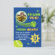 The bold tennis ball artwork and dynamic layout make this thank you card feel lively and exciting. A great way to let guests know how much their presence meant on your child’s special day.