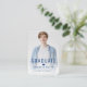Modern and minimal typography graduation announcements with photo, fun graduation party invitation on the back in blue and white, Custom it with your own photo and party information.