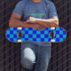 Blue Monochrome Checkerboard Pattern Skateboard