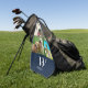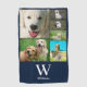 Monogram 7 photo blue golf towel. Replace the photos with your own pet or family photos. Easy to change the monogram and name. Modern, trendy golf towel. Makes a great gift idea.