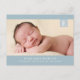 Blue Monogram Baby Boy Photo Birth Announcement Postcard