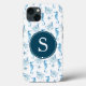 This monogram phone case features a watercolor sea life pattern in tropical shades of coastal blue with your custom initial in white over a navy blue background. Seahorse, starfish and sea coral artwork and design by Victoria Grigaliunas. To see more beachy phone cases like this visit www.zazzle.com/dotellabelle