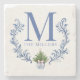 Blue Monogram Crest with Christmas Tree Stone Coaster