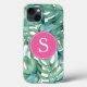 Add a touch of the tropics to your phone with this cute iPhone case design featuring a watercolor illustration of lush tropical banana and palm leaves in vibrant shades of green. The striking pink background highlights your personalised monogram in crisp white, creating a stylish and eye-catching accessory.