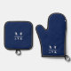 Blue Monogram Name Initial Simple Plain Custom Oven Mitt & Pot Holder Set