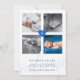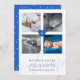 Adorable baby announcement in photo collage form, with place for four square photos of your beautiful baby boy. In the middle, a blue heart with your baby's monogram. And underneath your baby's name and birth stats, "welcome," is written in a beautiful, pale blue calligraphy font.