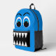Check out this cute blue cartoon monster backpack, which you can personalise by adding your own name to the side panel area. Adorable big-eyed blue monster, with open mouth and jagged teeth.