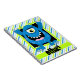Cool, colourful kid's monster, blue cyclops with green horns, neon green, monster theme design on Neon Green, White Stripes pattern. Perfect gift for baby, toddler, kids, children, teens, or adults! Personalised the design template by adding a child's name or custom text. Visit our store, Birthday Party House, for more great customisable boy and girl products!