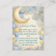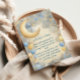 A dreamy watercolor design featuring a glowing crescent moon surrounded by hanging stars, fluffy clouds, and festive balloons in soft shades of blue and gold. Perfect for creating a magical and celestial-inspired baby shower atmosphere.