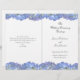 Light blue floral border, folded wedding programs. Print your own wedding ceremony programs on decorated paper. Both sides of 8.5 x 11 inch paper have templates for information including a thank-you note from the bride and groom. Blue hydrangea flowers border the top and bottom, and paper must be folded after purchase.