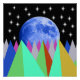 A full moon with stars and mountains