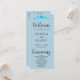 Turn to the back of the program, and you'll find a thoughtfully arranged list of the wedding party, presented in classic black and grey text with a clean and simple block font. The words "Welcome," "Ceremony," and "Wedding Party" are elegantly accentuated in a decorative script font, adding a touch of sophistication and romance to the overall design.