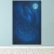 A mystical blue phoenix rising under the full moon — glowing feathers, flowing celestial flames, and an aura of divine rebirth. Created in luxury fine-art style, perfect for collectors who seek elegance, symbolism, and high-end wall décor.