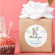 Watercolor blue gold moon and stars celestial teddy bear holding balloons round thank you stickers.