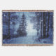 Blue Moonlit Magical Forest Winter Scene Throw Blanket