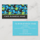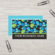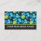 A bright and bold business card for many types of business, with a 'Blue Moons' abstract pattern in bright blues and neon green on a black background; from a handpainted paper collage design by Judy Adamson. Fully and easily customisable.