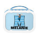 Our Monogrammed Moose for the Letter M is done in cute blue knit prints. Give your child an adorable personalised lunch box they can be proud of and they won't mix with other children's or if they leave it behind, they are likely to get it back!