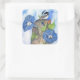 Blue Morning Glories and Chickadee Square Sticker