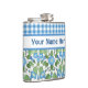 Blue Morning Glory and Check Gingham Hip Flask