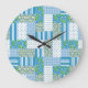 A pretty Wall Clock, with a country style Faux Patchwork of floral, polka dot, striped and check gingham patterns in blue, green and white: part of the Posh & Painterly 'Morning Glory' collection. (This pattern will fit all of the clocks.)