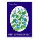 A pretty floral Birthday Card for an Aunt with a birthday in September. The design is a hand-painted watercolour, by Judy Adamson, of bright blue Morning Glory flowers on an oval white background with a deep blue border and elegant white lettering. You can personalise the inside message.