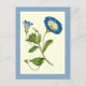 A botanical postcard showcasing an illustration of a small blue morning glory vine, also called Small Convolvulus or Bindweed, originally featured in Curtis’s Botanical Magazine.