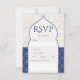 Our Moroccan inspired wedding rsvp card with a beautiful royal blue arch and floral wooden texture colour block is the perfect choice for a unique and unforgettable wedding celebration. Get ready to impress your guests and set the tone for your big day, the colours are fully editable. Perfect for exotic, tropical destination wedding.