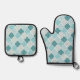 Blue Moroccan Trellis, Latticework, Quatrefoil Oven Mitt & Pot Holder Set
