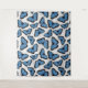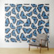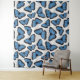 Seamless pattern design with blue morpho butterflies on hydrangea flowers linework background.