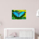 Butterfly Blue Morpho against a background of green foliage. A cute poster for you or as a gift.
