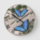 Blue Morpho Butterfly Floral Nature Art Round Clock