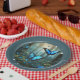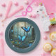 Blue Morpho butterflies take flight in the rainforest in this beautiful AI generated image with white star frame.