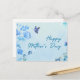 This postcard is a celebration of Mother’s Day, designed with a serene and graceful collection of blue floral illustrations. It features a palette of cool blues, reflecting the tranquillity and beauty of a clear spring sky. The flowers are rendered in different shades and sizes, from pale to deep blue, and are artfully arranged to create a sense of natural elegance.