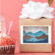 A beautiful landscape with unique textures showing a blue mountain landscape with a cloudy sky and shades of brown and dark magenta.