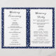 Blue mountains and conifers folded wedding program. A trendy yet elegant wedding design featuring a mountain range through conifers and your names in handwritten style. The inside includes blue and white borders with polka dots and white frames with your text.