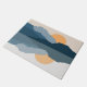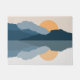 Abstract colourful illustration of sunrise with blue mountains reflected in the lake