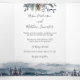 All in one, Elegant and rustic Wedding invitation with exquisite mountains and forest watercolor scenery. No need for extra details insert cards and RSVP cards to add to your invitation, save paper, time and money with this all in one invitation card. Watercolor landscape in dusty blue, navy blue, grey and rust shades. Floral details with flowers and foliage in dusty blue, navy blue, grey, sage and caramel tones. Ability to select customise further to add, adjust or change text to suit your needs. Ideal for outdoor lovers and /or mountain, forest wedding destinations. Coordinating products available. Same invitation with "the Wedding of" on the front instead of "the Wedding celebration of", also available. Part of our Rustic Winter Mountains wedding collection.