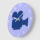 BLUE MOVIE CAMERA ILLUSTRATION WITH WHITE NUMBERS LARGE CLOCK