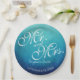 Blue Ombre Mr and Mrs Personalised Wedding Reception Paper Plates. Just add your name and wedding date.