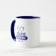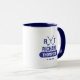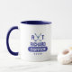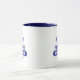 White mug personalised with name in a bold and blue font style, for an elegant golfer... a simple and modern monogrammed design, with crossed golf clubs, his initials and name... a cool gift idea for that stylish golf player in your life.