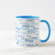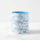 A cool blue mug with a pattern of names of different font styles, for him and for her